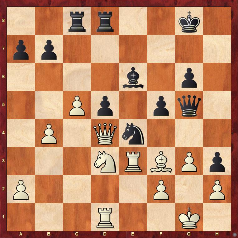 Tady jsem byl naposledy spokojen. Po 28. … Jh5!? s dalším f4 jsem se začal bránit …