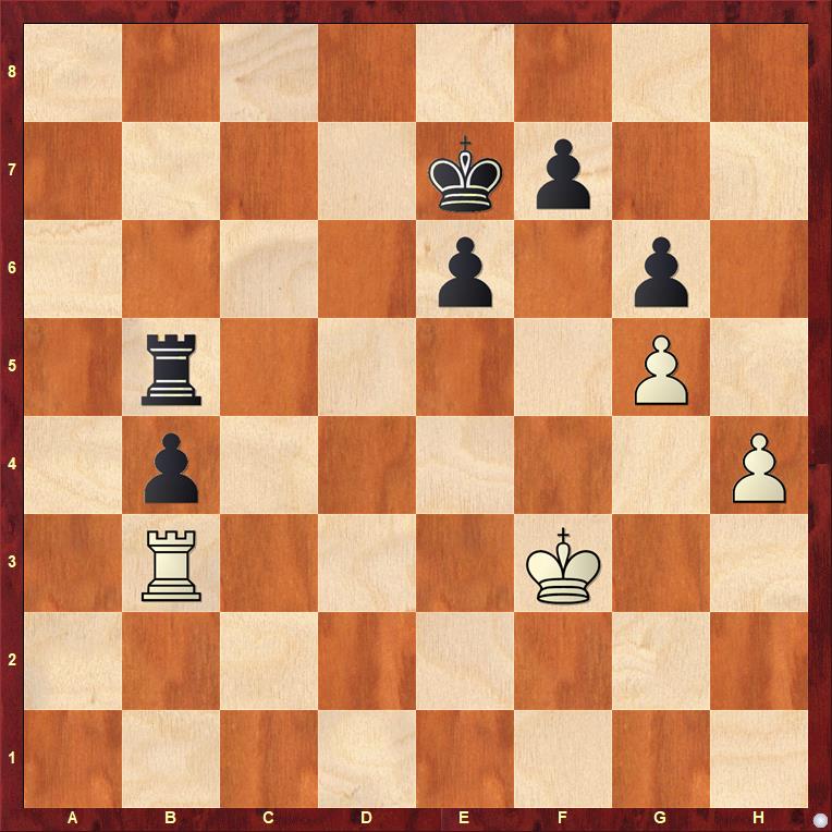 Tohle se asi dá ještě nějak zkoušet (ale jak?), po 36. g4?! se černý zbavil dvojpěšce a partie došla do remízy. 1/2