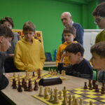 Protože krajský kalendář je dost prázdný (do Východočeského poháru jsme nepostoupili), věnovali jsme další sobotu dalšímu tréninkovému turnaji, tentokrát poprvé v prostorách DDM. I když se nepřihlásili všichni, účast je velmi pěkná, 14 našich, dva pozvaní hosté ze Třebové, víc se do zelené učebny ani nevejde. Na programu je opět 7 kol švýcarským systémem tempem 2 x 15 minut + 5s/tah, nějaký trénink taktiky a instruktivní partie.
