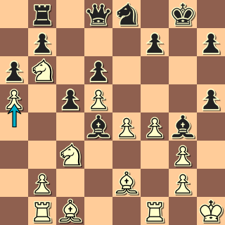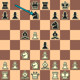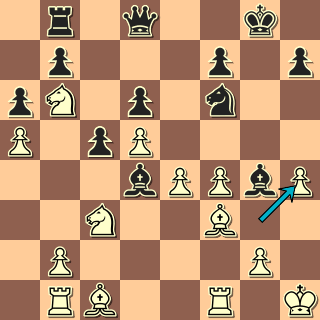 Benoni ve verzi velmi příznivé černému. Plánovanému postupu b7-b5 sice bílý zabránil, ale královské křídlo ponechal bez ochrany. Nic nedává 16. … Dh4 pro 17. De1, jde to však obráceně: 16. … Jg3+!! 17. fxg3 Ve5 a bílý musí odevzdat dámu. 18. f4 Vh5+ 19. Dxh5 gxh5. Kromě malého materiálního zisku zůstaly hlavně černému další šance na útok, bílý král je po h sloupci stále smrtelně zranitelný. 20. Se2?! Sg4 21. Vb1?! Je8 22. a5?