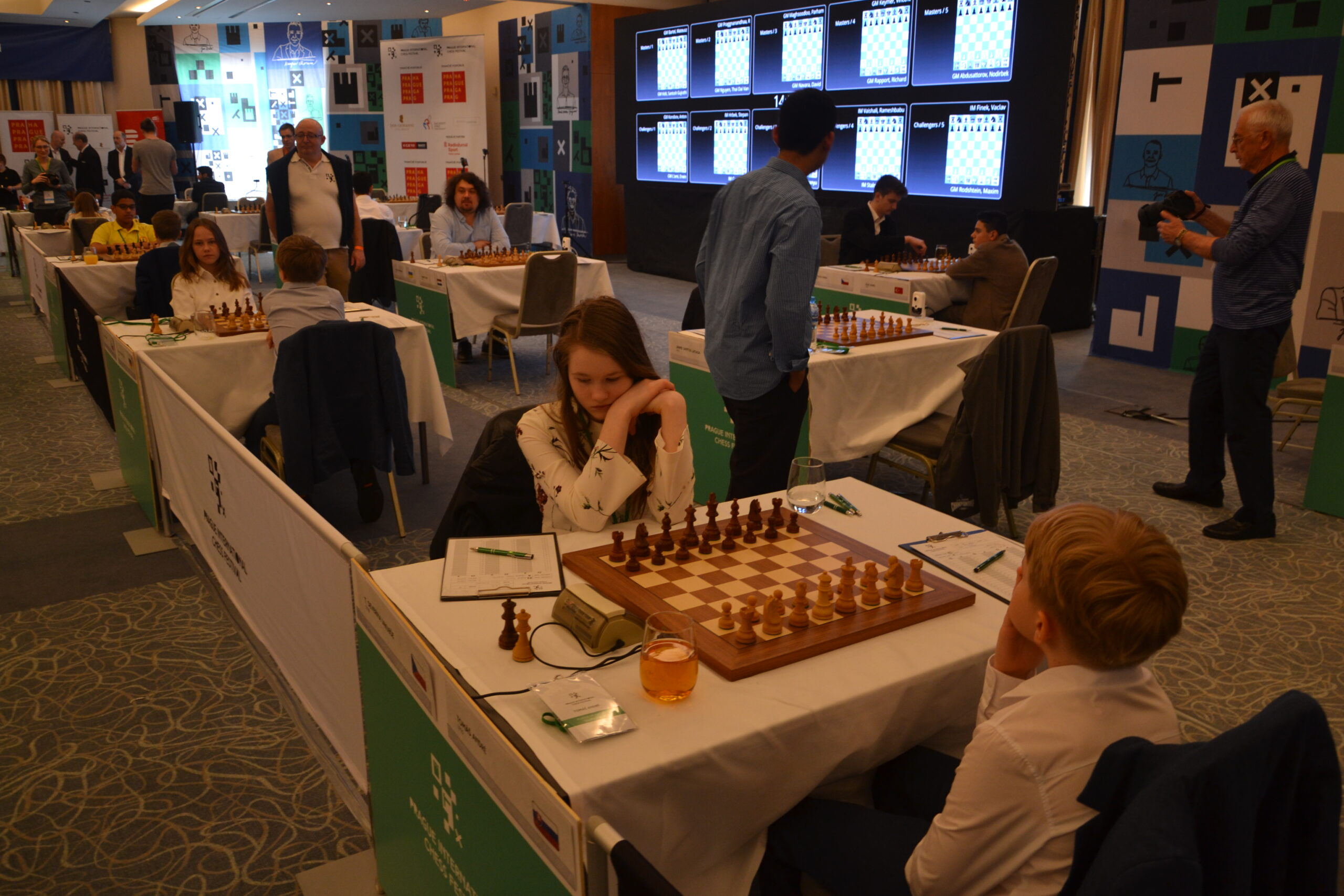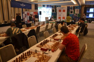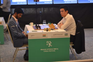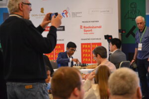 A další, koho jsem chtěl určitě vidět, byl Praggnanandhaa, bohužel seděl až v zadním koutě, kde hrál černými proti Vanu Nguyenovi.