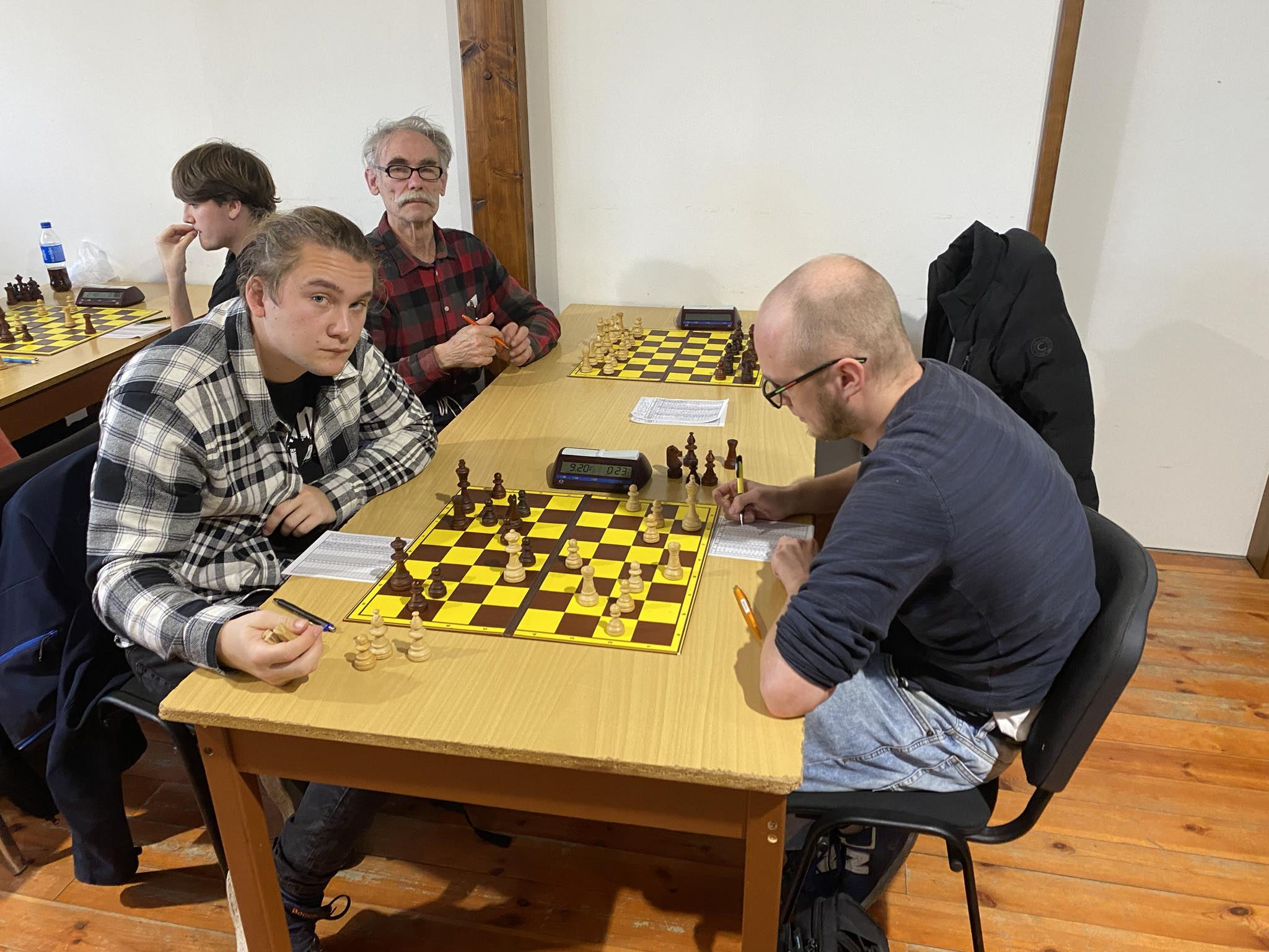 Jako první ale přece jen vyhrál Ivo, legrace byla, že sice dávno po kontrole, ale na hodinách měl „vojtovský“ čas 1:50, soupeř se s pozicí nechtěl rozloučit a vyčerpal většinu času. 0:1