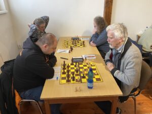 Takže domácí měli na prvních třech deskách hráče č. 3, 7 a 13, to se pak fakt hraje špatně. Vzniklé dvojice se daly většinou označit jako nerovné (byť po nedávných úpravách ratingu zase ne tolik) a možná jsme trochu chytili „pralesní“ atmosféru od zároveň hraného duelu KSZ Polabiny G – Hlinsko C.