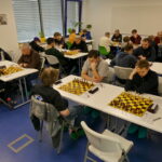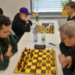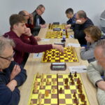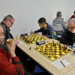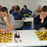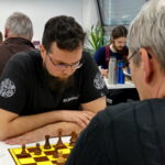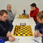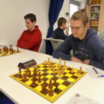 Zápas sám o sobě je dlouho poměrně klidný, záhy se půlí na sedmé, kde se Michal Píše s Davidem Schafferem nechtějí trýznit jako naposledy. Pak už přeci jen začne přetlačovaná, za nás docela nadějná. Vojta půlí z pozice, která se krátce předtím dala vyhrát, ale složitě (potvrzeno v hospodě), nikoliv u desky, kde to byla korektní půlka. Remízy jsme po třech hodinách boje zapsali též na druhé (Zdenda) a třetí (Petr). To už jsme ale zatroubili k útoku na tři body zásluhou Toma, který po nulkách konečně zabral a s přehledem ubránil kavárenský útok soupeře.