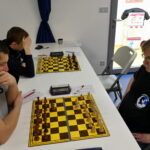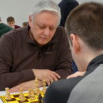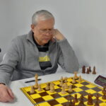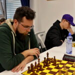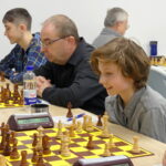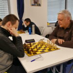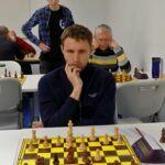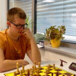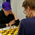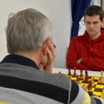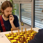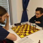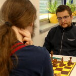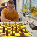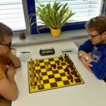 7.Píše Michal-Schaffer David 1/2 Naposledy to o schod níž byla bitva s remízovým vyústěním, tentokrát se náš junior a hostující trenér dohodli na stejném výsledku dost rychle. Nějaká hodně neteoretická dámská indická, kde bílý oželel dvojku střelců a černý centrum. 10 tahů, vypnout hodiny a uklidit figurky.