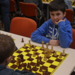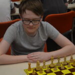 Vojtěch Tóth je členem dobroučského klubu, ale jezdí s námi. Zahájil kontumákem, takže měl pak silné soupeře, ve 4. kole se mu povedl málo vídaný mat dvěma jezdci (Je2 a Jf2 při bílém králi na h1 krátce po zahájení). Víc už toho neuhrál, ale výsledek odpovídá, vždyť pořádně hraje první sezónu a patří tu k nejmladším. 1/6 + 1K, 24. místo.