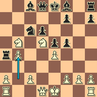 Čím víc některé varianty hraju, tím častěji mě v nich soupeři překvapují ;-). Podle soupeře tah pochází od Širova. Seřezal tak Lautiera v Monaku 2000, o rok později tak porazil Topalova a narazil až proti Kasparovovi. O tom jsem neměl tušení, a tak jsem musel v rapidu začít vymýšlet. 13. … Vxb4! To je první chrabrá věž. Uznávám, že Kasparov asi věděl, proč hraje 13. … Dh4, ale já jsem byl se svým tahem spokojen. 14. Jbc7+ Kd7 15. Dh5? Připustit braní na e4 se šachem je moc; správná byla rošáda. 15. … Vxe4+ 16. Kf1 Je7 17. Dxf7 Kc6 Toť skulinka! 18. Vb1 Jxd5 19. Jxd5 Sa6+ 20. Kg1 Da5