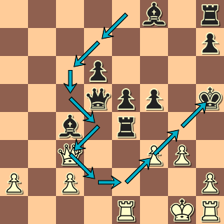 A pro milovníky kuriozit i v tom, že po 22. … Kc5?! 23. Dc7+ Kd4 nejde 24. Kg2 pro odtah (nejlíp 24. … Ve2+) a na 24. Vb4+ Sc4 25. Dc6+ Kc3 26. Vb1 Kd2 27. Db4+ Ke2 28. Ve1+ uteče černý král po bílých polích: 28. … Kf3 29. Dc3+ Kg4 30. f3+ Kh5 a bílý už nic nemá. Samozřejmě mi to ukázal až počítač, ale pochod krále stojí za to!