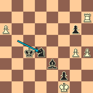 Problém je v tom, že jsem se včas nepřeorientoval. Posledních asi třicet tahů jsem odehrál na praporu, přežil jsem klinickou smrt a stále ještě jsem bojoval s chimérou postupu pěšce f2-f1. Odtud vzešel tah 61. Vxf2? s úlevným vydechnutím („půlku mám!“). Kdybych si místo toho uvědomil, že pf2 je mrtvola odsouzená k zániku, že mám dva postouplé pěšce, z nichž každý znamená zisk figury, a že tedy hraju na výhru, mohl jsem zahrát 61. Ke2! nebo 61. Ve7! (za jeden nebo oba tahy 4 body za řešení do 30s nebo 2 body za řešení trvající déle). Střelec se musí rozhodnout, kterou diagonálu pustí.