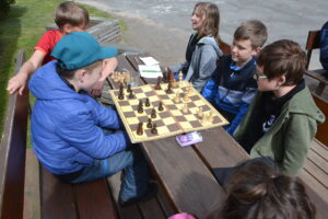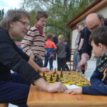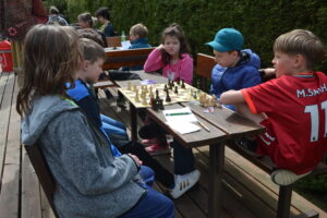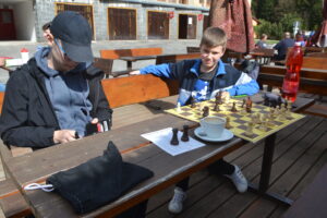 Před kolem, které začíná v devět, zvolila Saša přípravu šachovou, většina malých přípravu fyzickou a zkušení borci přípravu (de)mentální, protože již znají zásadu, že na turnaji se kromě šachů nic nedělá.