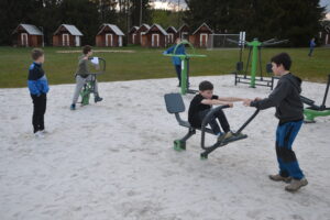 Na místě samém zavládly nejdřív rozpaky, když bylo zřejmé, že ubytování hned tak nebude, ale děti si zahrály fotbal, v poledne poobědvaly a pak už se šlo i ubytovat. Saša bydlí s holkama na budově, my máme dvě chatky po čtyřech (já dohlížím na Dana, Tondu a Matěje P., Tomáš a Matěj P. u sebe mají Mariana – stravenky spravuje Tomáš – a Vildu).