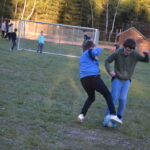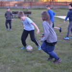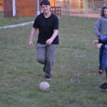 Marian s Vildou stále pobíhají ve vlastním pokutovém území (balón je ale permanentně na druhé straně). Ostatní malí na dětském hřišti se postupně ztrácejí v šeru.