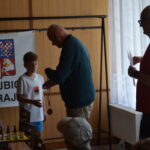 Ona rekordní partie se dosud hraje (bílý vyhraje), malé kategorie postupně začaly hrát. Dan je bohužel záhy bez figury.