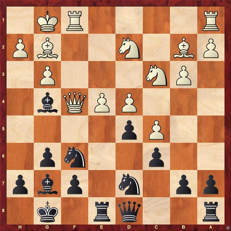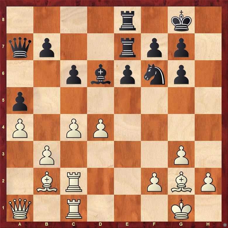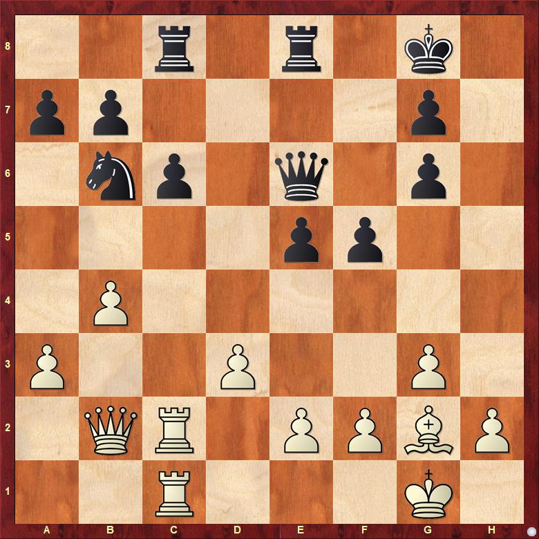 23. b5!+/- Minoritní útok krásně odhaluje dámské křídlo, všimněte si diagonály pro bílého střelce a sloupce pro bílé věže.