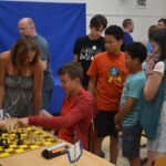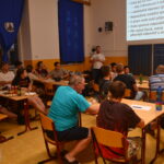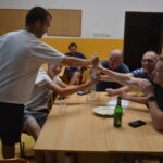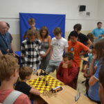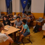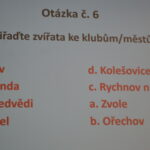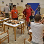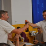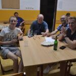Na společenském večeru tradičně steaků, co hrdlo ráčí, neméně tradiční kvíz Honzy Fialy, kde se fakt dá vědět s bídou půlka. Tentokrát jsme vytvořili čistě rodinné družstvo, ze sedmi týmů jsme skončili těsně třetí (první byl tým, kde jsem viděl Jardu Bureše, Kopalovy a Václava Buchtu, druhý tým kolem Jaroslava Novotného). Víte, kde se hrál zápas Steinitz – Lasker o MS? Najdete v příjmení maďarského velmistra ukrytý název hudebního stylu? Víte, který pražský šachový klub se jmenuje podle mužského křestního jména (svátek v prosinci)? Tak to byly ty lehčí otázky, ty jsme měli.