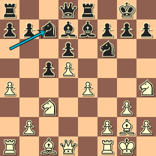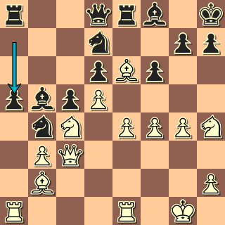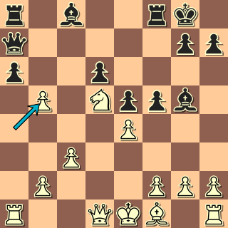 Je jasné, že jsem musel být bílý; takhle přece Benoni černýma nehraju. Tah 13. f4? si ale za rámeček nedám. Je zřejmé, že po 13. e5! (2 body) bílý získá figuru. Jezdec nemá ústup a po 13. … dxe5 14. d6 je vidle.