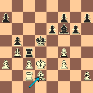 Tady už je převaha bílého zcela nesporná a tah 26. Jg6+! (1 bod) přehlédl jen můj soupeř. 1:0