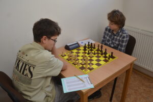 Matěj Křížek (1/2) naopak hraje zcela seriózně, ale je to pořád spíš posunování, nedokáže vytvořit na soupeře tlak. Ve druhé partii si neodpustil obvyklé taktické přehlédnutí.