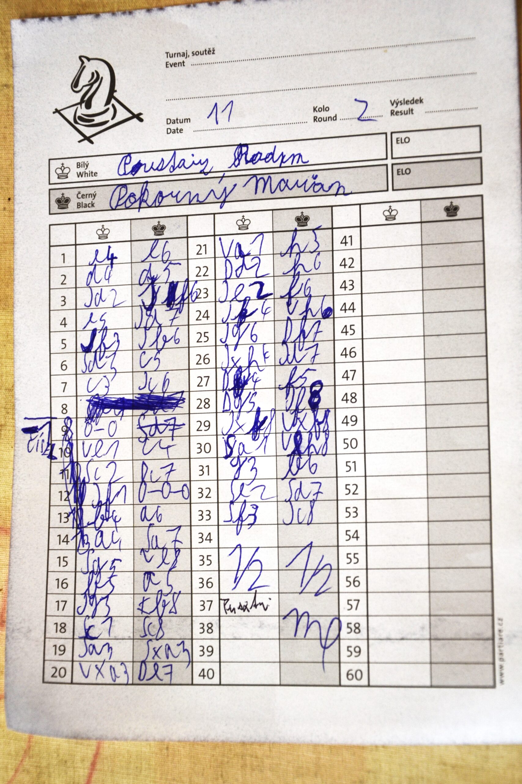 Marian Pokorný (0,5/2) měl nelehkou úlohu udržet černými dva starší a silnější soupeře. Dokázal to napůl, když proti Pusztaiovi našel zajímavou protihru.