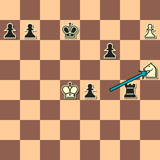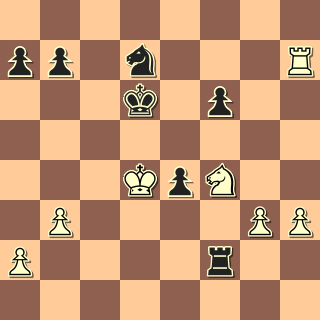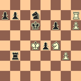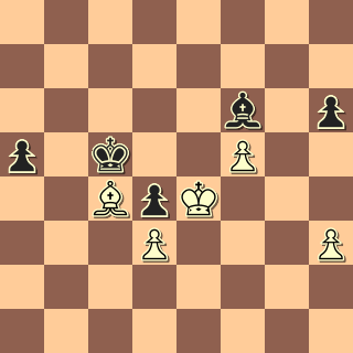kde na výhru nemůže hrát ani jeden. Leda kdyby se černý ulakomil na postup a pěšce a pustil bílého krále dopředu, ještě by prohrál, to se však nestalo. 1/2