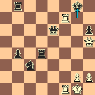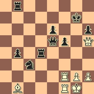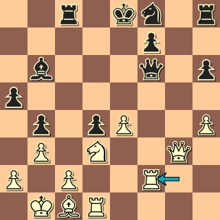 Tak to se nám to přiostřilo … Černý má spoustu dřeva, ale měl by se rychle zabývat chytáním h pěšce, nejpřesněji 37. … Vb4+! a teprve po případném 38. Kc3 zahrát Vb1. Partie však skončila ihned po 37. … Vxg3?? 38. Vxd7+! Po 38. … Kxd7 39. h7 Vg4 40 Jh5!