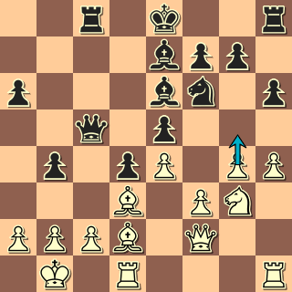 Péča měl možnost ve 24.tahu získat malou výhodu zajímavým převodem jezdce 24. … Jd4 (a další Jf5), ale ten diagram tu k dispozici nemáme. 27. … Db5? je samozřejmě chyba kvůli tomu, že dáma bude chybět na královském křídle.