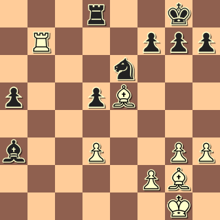 má bílý o pěšce méně. Naštěstí aktivní věž a dvojice střelců dávají slušnou kompenzaci. Po 28. … Sc5 29. Sc7 Jxc7 30. Vxc7 se objevili nestejnopolní střelci a partie skončila remízou v pozici,