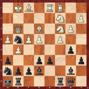 Tady se po 22. … Jxe3 soupeři nelíbily (a mně líbily) motivy po černých polích, které by nastaly po 23. Dxe3, pokud hned nebo časem zahraju d5. Zahrál tedy 23. Jxe3, ale tam už po b4 padá centrální pe4.