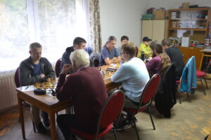 Půlka výpravy pak odjela, já si navařil čaj, vytáhl písemky, Kuba se šel proběhnout (nebo běžel projít?) a hrála se jediná partie.