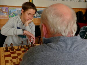 Patrik na šesté se naopak potkal se zkušeností, s Jirkou Kašparem se v nějaké celkem měkounké králce nevhodně oslabil (díra na d5) a soupeř ho přehledem vycvičil.