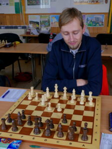 Tomáš měl ze skotské hezkou pozici, posléze dvě figury za věž… jenže místo realizace lepší koncovky si nesmyslně sebral na a7, o chyceného střelce přišel a soupeř si výhru pohlídal.