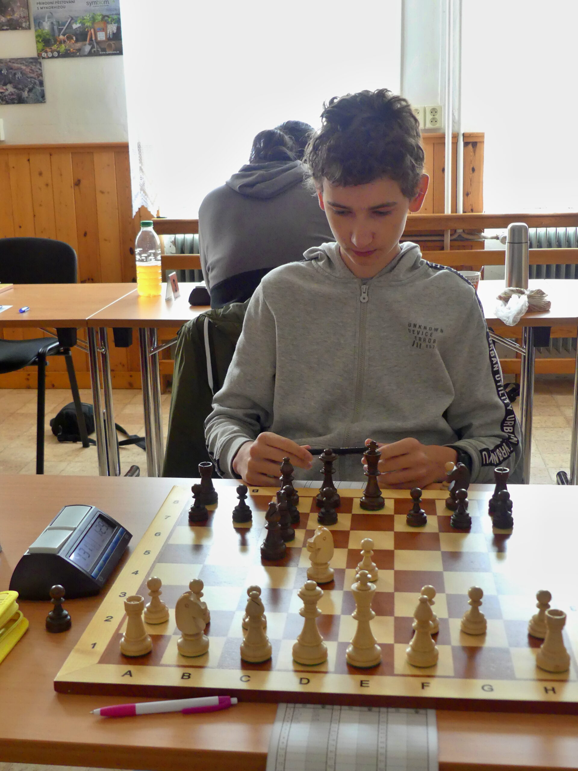 Karel junior zahrál moc hezky, od začátku měl v DG náskok ve vývinu, tlak si udržoval i po výměně dam a v silně redukované pozici si soupeř, mám dojem, vlezl do matu s centralizovaným jezdcem a věží.