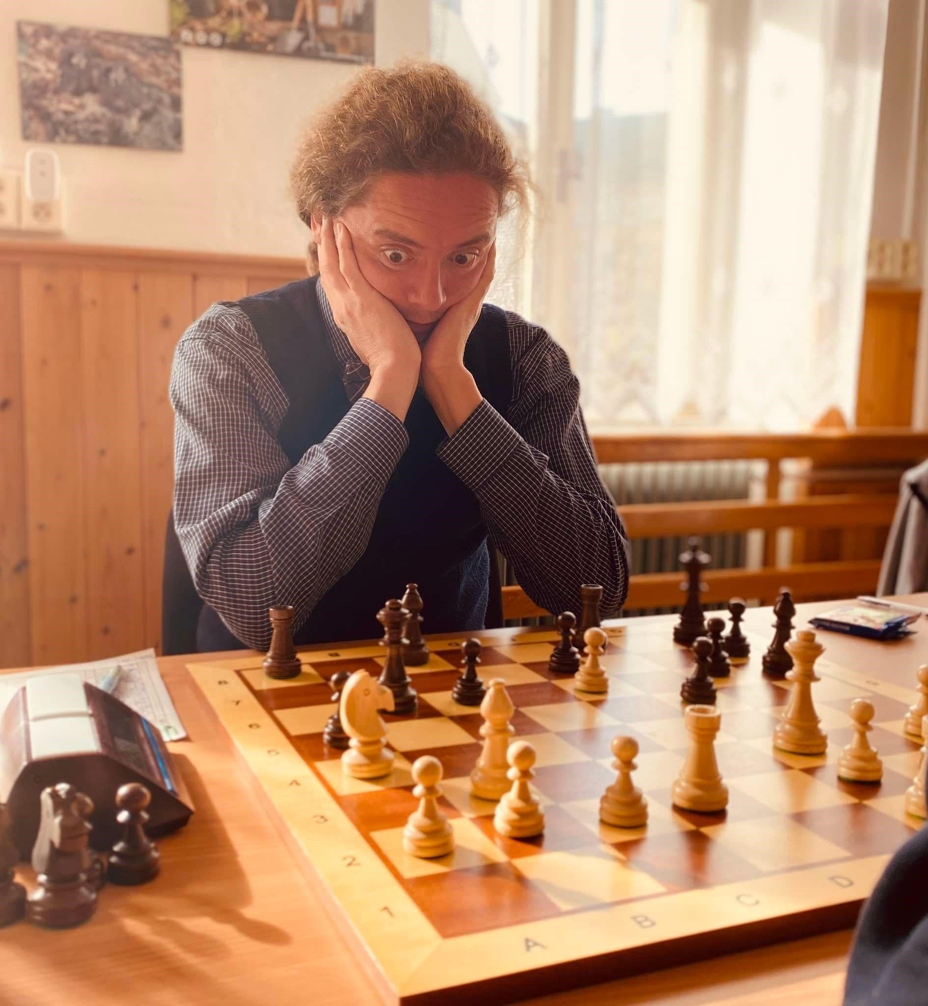 Vlasta si přivezl vedle domácí kombuchy také domácí přípravu, v aljechince přišpendil soupeře na jeho půlku a postupně ho ze šachovnice vytlačil zcela. Takhle bych to chtěl umět…