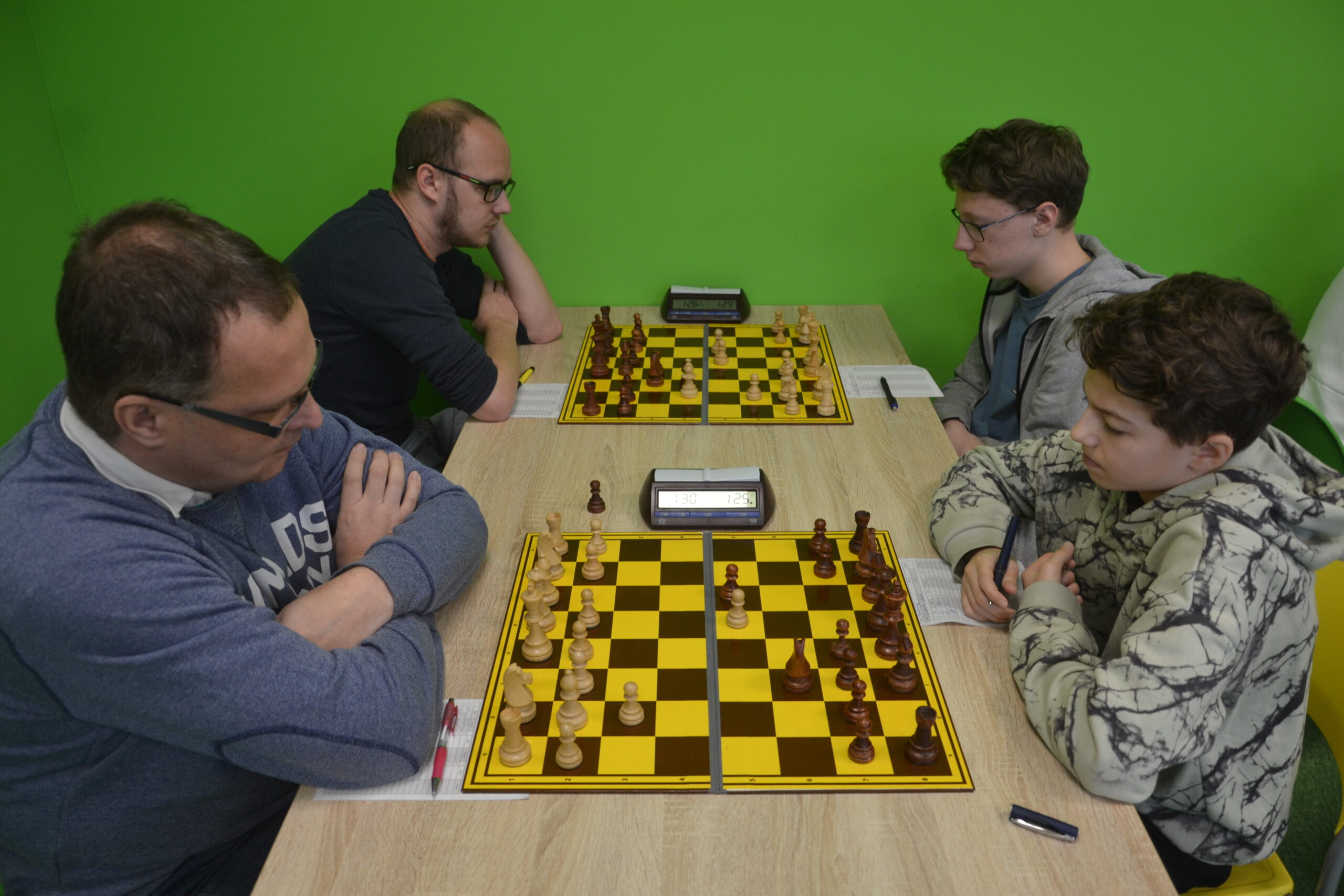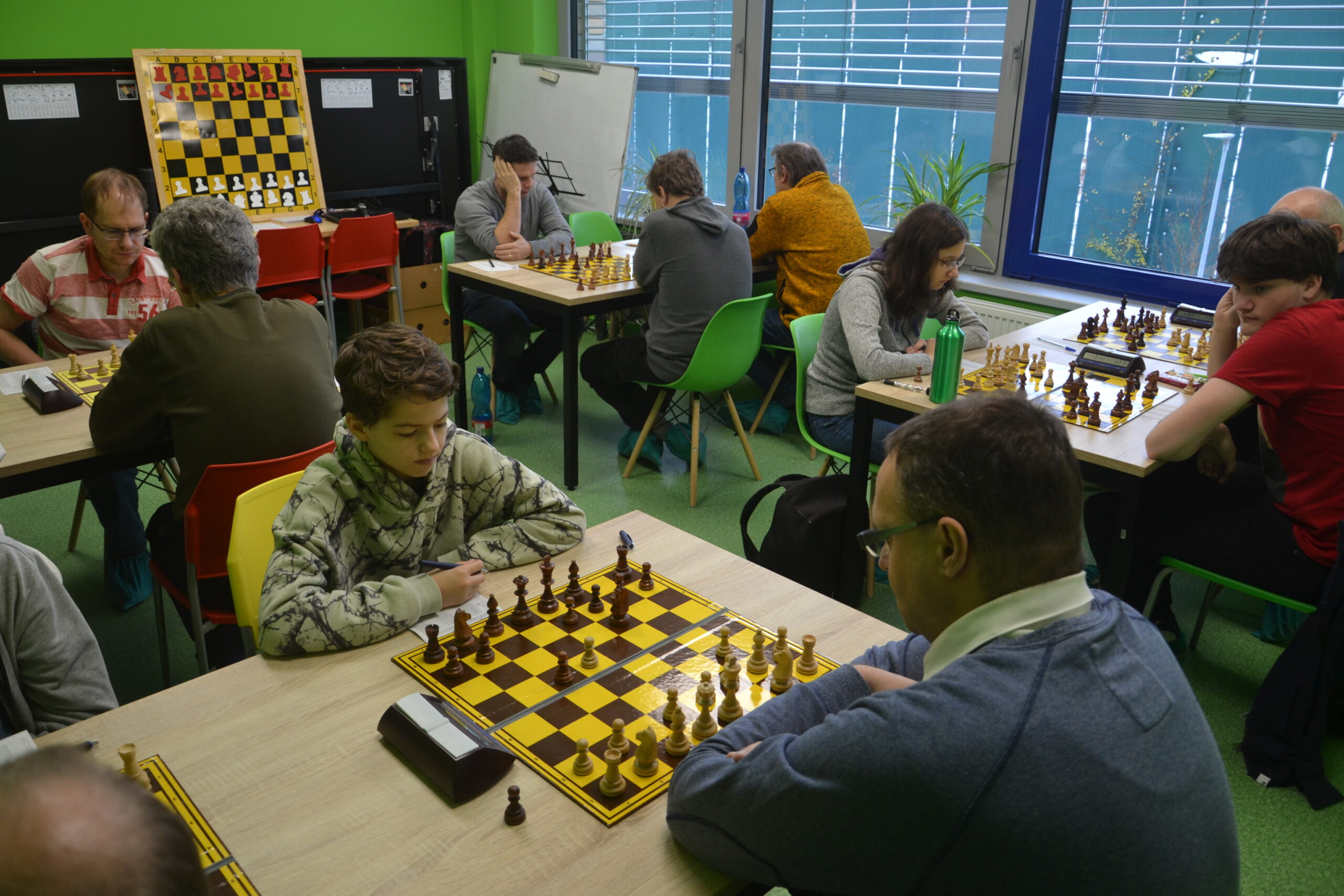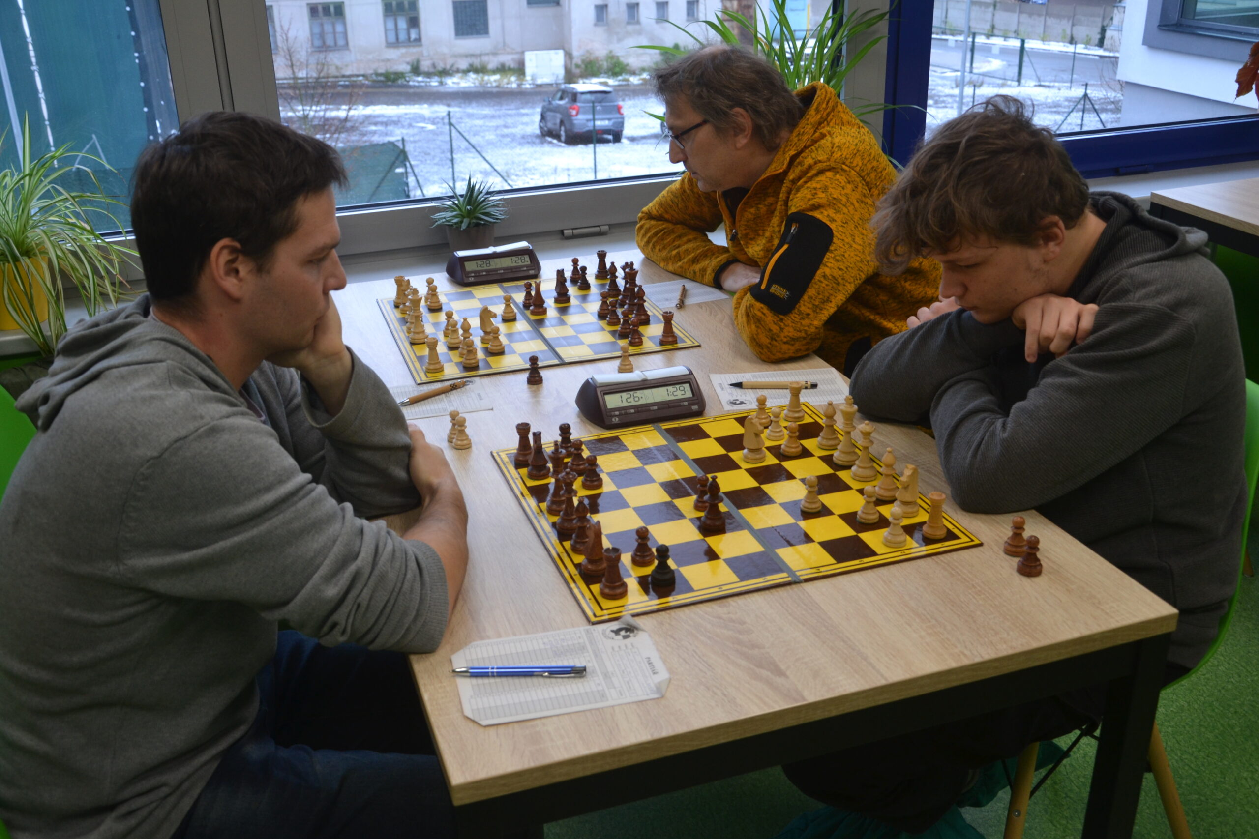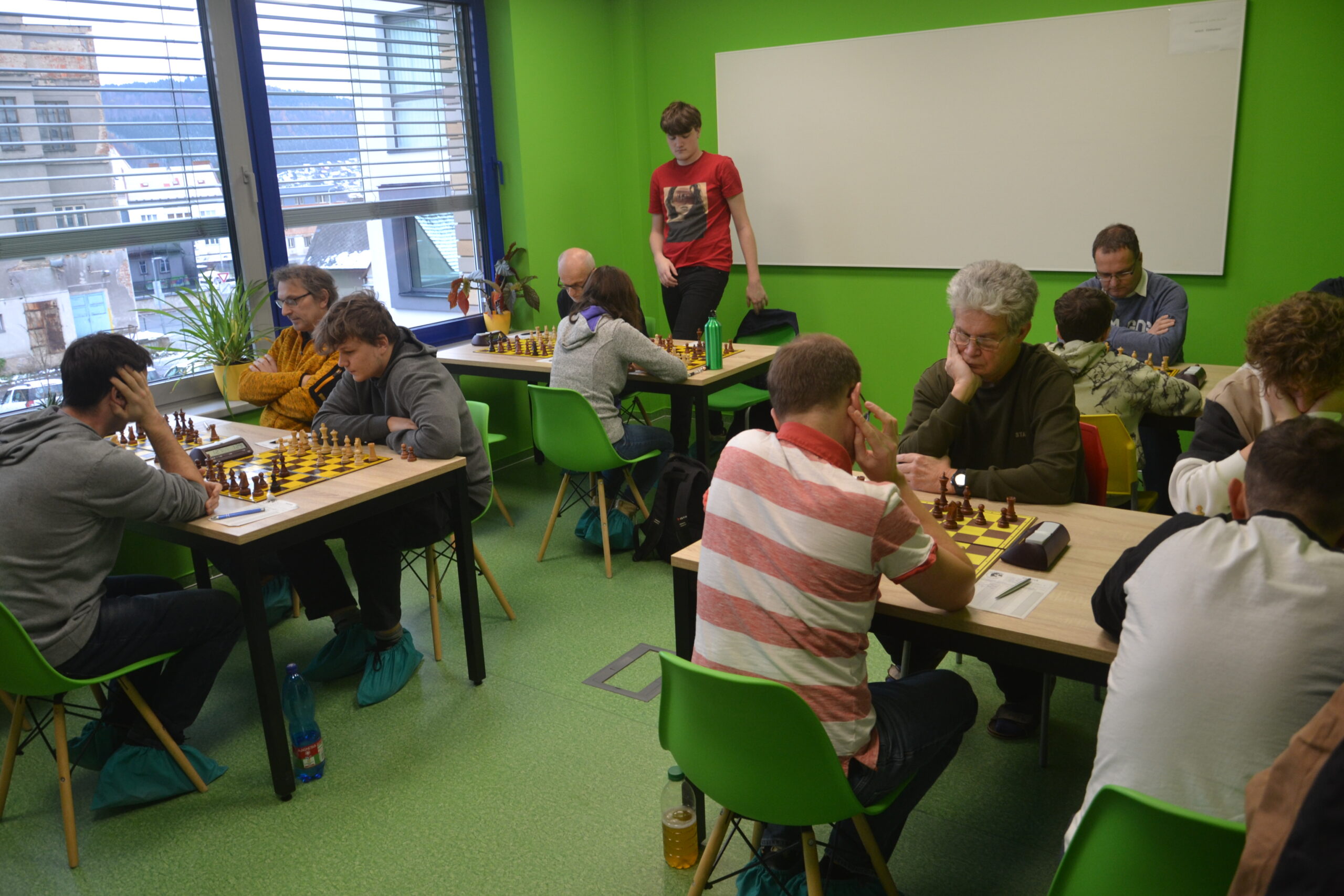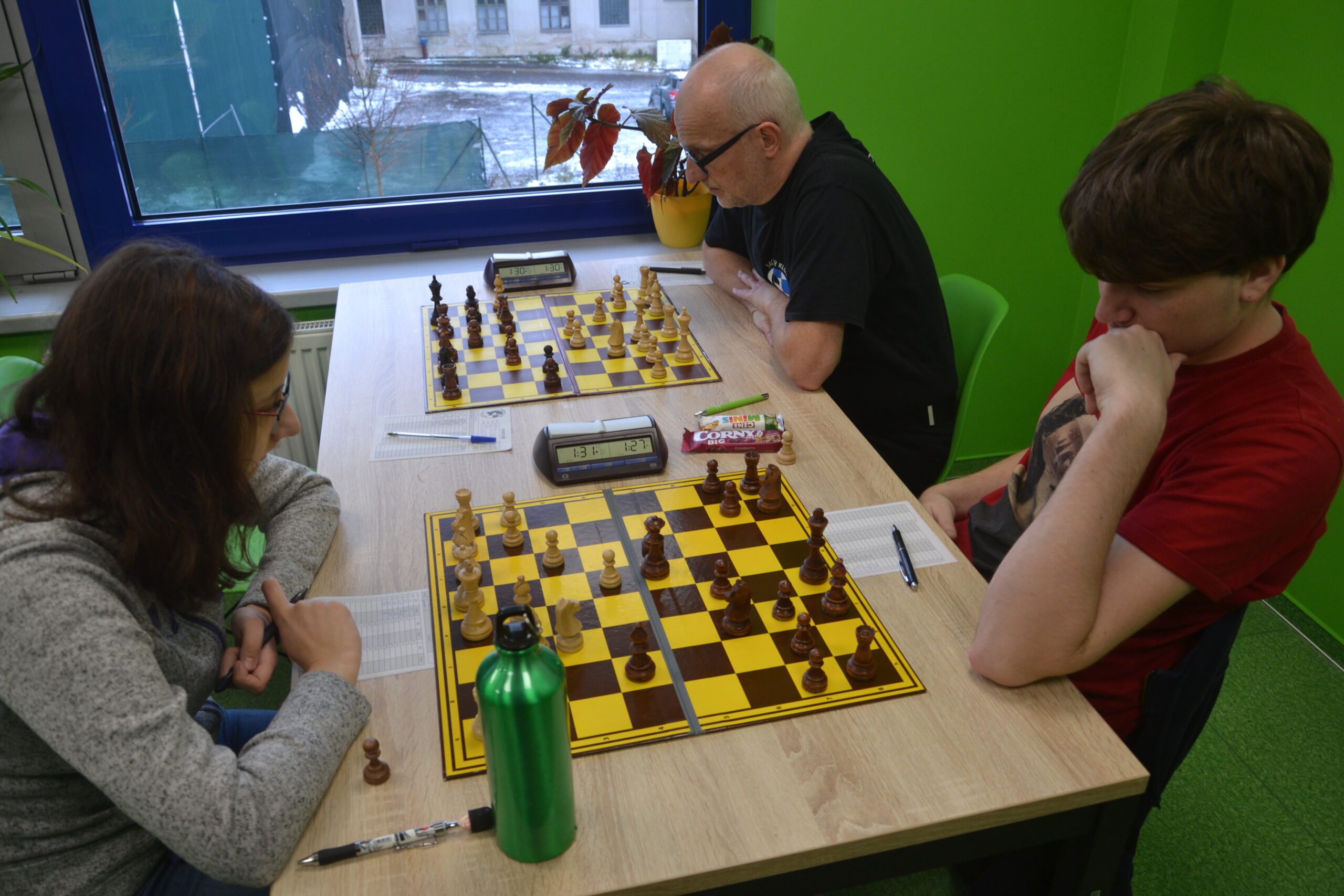 A to se taky stalo. Vlasta bojoval až do konce, ale Honzu Švuba nepřetlačil, Vašek proti Julii Kalousové převahu uplatnil navzdory nestejnopolákům, ale ani mně v nejdelší partii (cca do 15.45?) nebyli nestejnopoláci nic platní. 4:4
