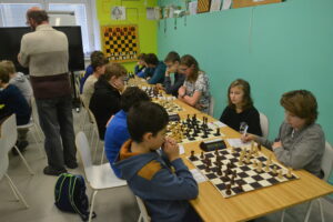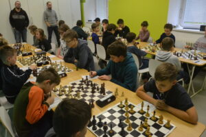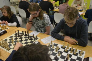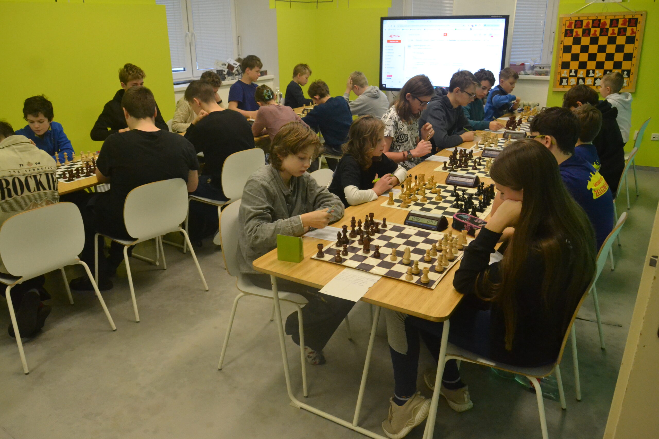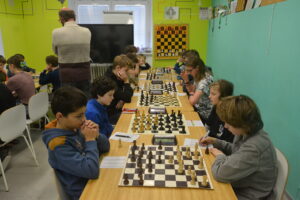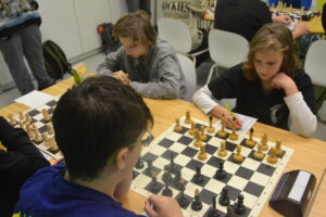 Vedeme 3:0, vyhrál Vilda i Matěj. Vepředu je to horší, Marian i Vítek postrádají dva pěšce. Bude rozhodovat Saša, která je teprve na prahu střední hry, 19 minut proti 25, má víc prostoru, figury zatím nejsou v kontaktu.