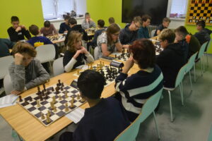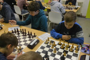 Prohráváme 0:1, Vítek bez kvality ještě dostal mat na první řadě. Marian je bez dvou pěšců, Matěj stále bez pěšce. Jinde kolem roviny.