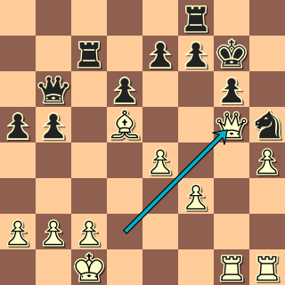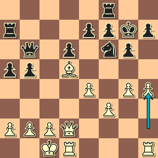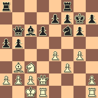 Pálí za sebou všechny mosty. Že by se matový útok přece jen konal? 21. … Dc5?! Mnohem lepší bylo 21. … Df2! Obyčejné krytí pole c2 tahem 22. Vg2 nejde pro Vxc2+, po 22. Dd2 černý vymění dámy a tahem e6 si chytne střelce, po 22. c3 přijde Dxf3. 22. Vg2 e6 Pozdě. 23. Dxh5 exd5 24. exd5 De3+ 25. Kb1 Vc4?! Lépe rozehrát druhou věž. 26.Vhg1 Dh6 27. Dxh6+?! Počítač jásá nad variantou 27. Df5 Vxh4 28. Dd7. Mě takové náhodné výpady esteticky moc neoslňují, ale budiž. 27. … Kxh6 28. Vg4 Vxg4 29. fxg4 Ve8 30. Kc1 Ve5