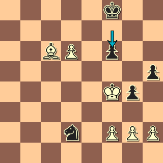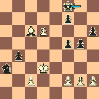 Zbytečně přibližuje slabého pěšce bílému králi. Po 38. … Jc4! by bílý musel pěšcem na d7. 39. d7? A Vojta tam jde dobrovolně! Jasné bylo např. Kf5, Sb5, Sd5 apod. Přesto partii dotáhl k výhře. Bílý si hlavně musí dát pozor, aby mu černý neobětoval koně za d a f pěšce, s h pěšcem to střelec nevyhraje. Bílý vyhrál v 67. tahu. 1:0