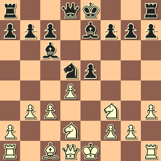 Nenápadná hrubka, samozřejmý tah ihned prohrává. Po správném 14. 0-0 nemá černý za figuru plnou kompenzaci, i když může po 14. … Sc3 trochu zlobit. Vidíte v pozici diagramu ten správný tah?