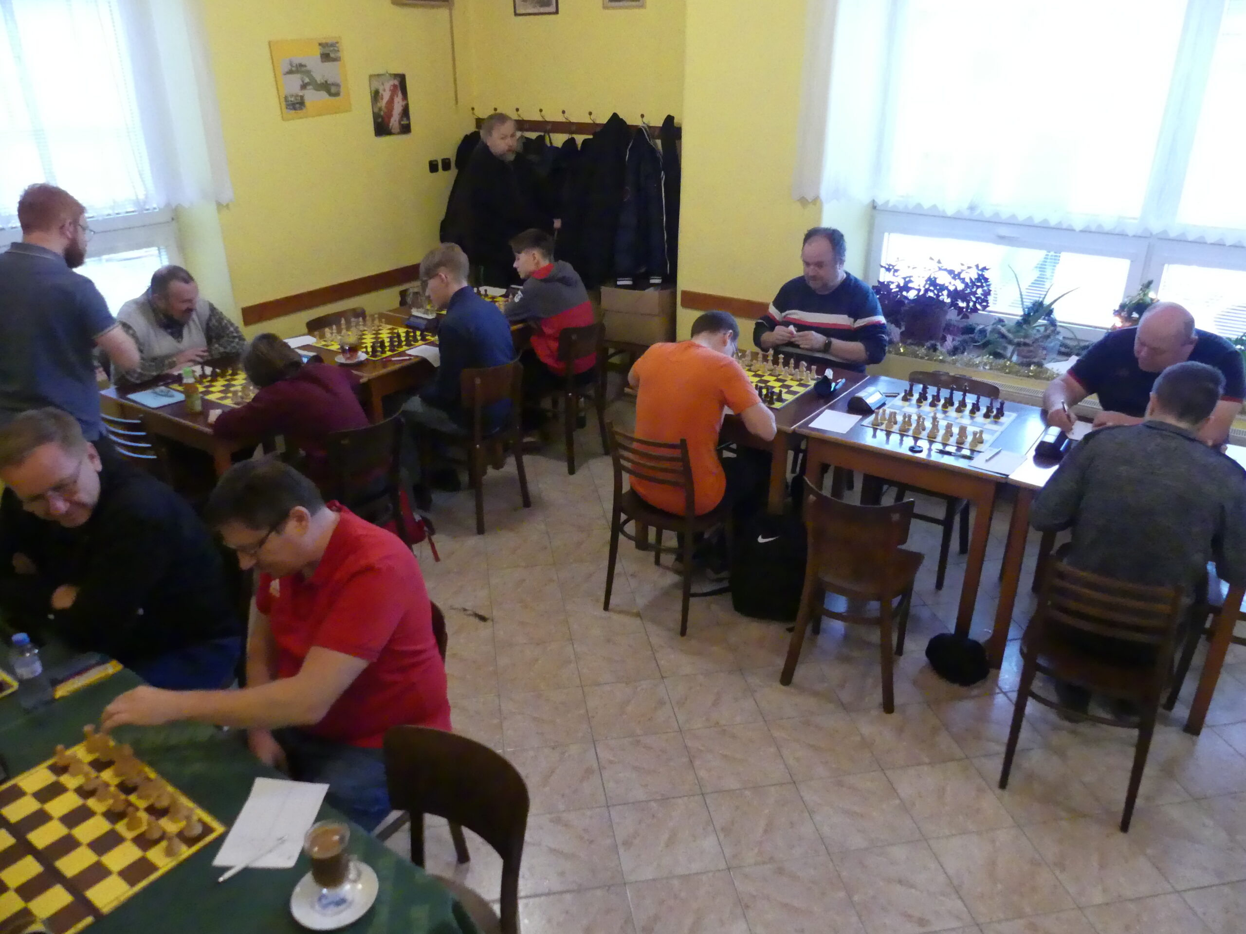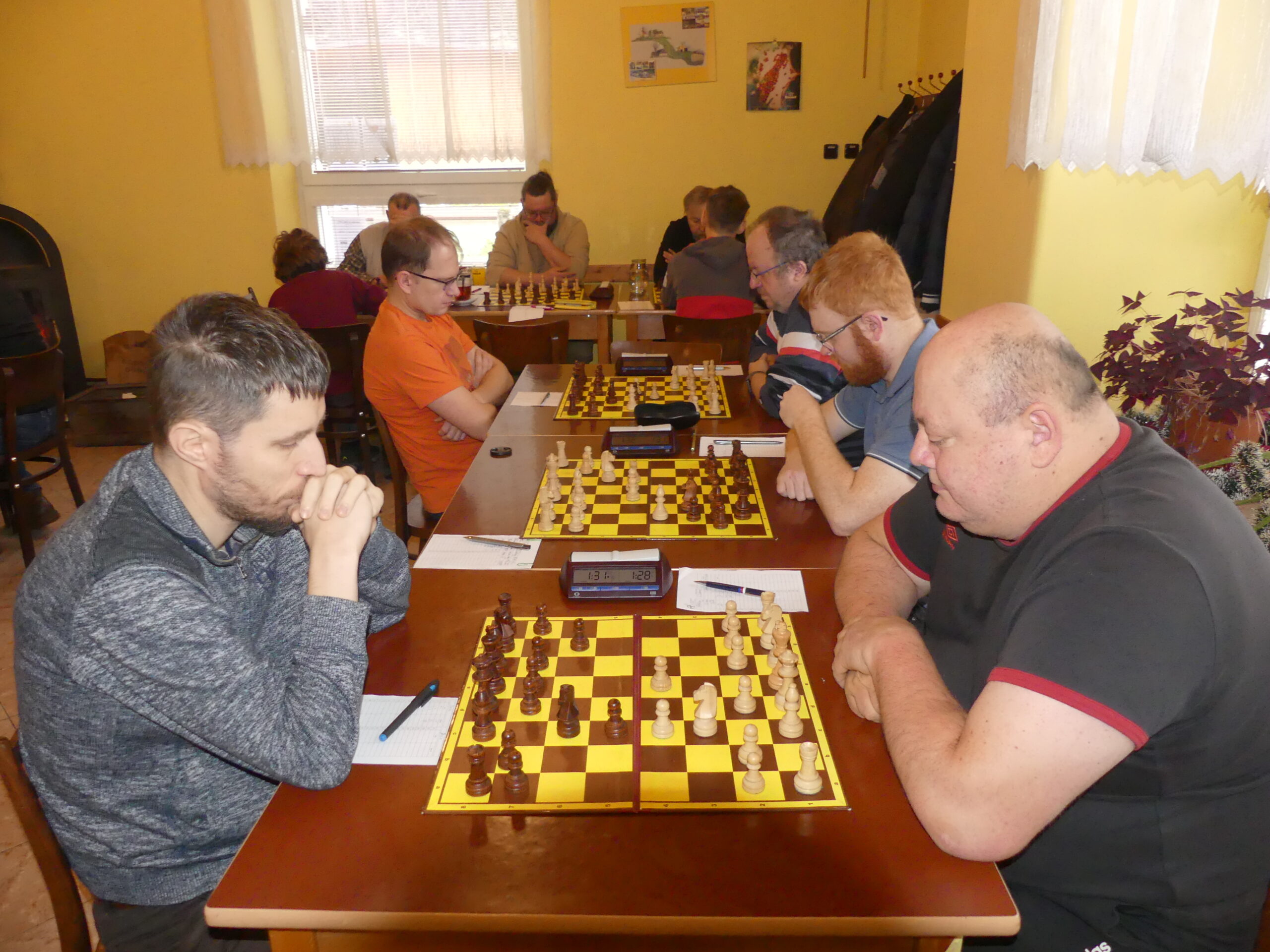 Lámat se to začne, jak je v KP2 zvykem, ještě před obědem… a v náš prospěch! Marian totiž senzačně vyhrál, další hostující Oušťák to s aktivitou přehnal, až pohřešoval figuru. A navíc konečně asi po roce skóroval i Pokyn senior. 2:0 a zasloužený obídek pro otce a syna od paní domácí! Pak navíc Saša navyšuje už na tříbodový rozdíl a to už vypadá hodně nadějně. Vůbec tak nevadí, že kapitán Ivoš původně trochu lepší věžovku jen zapůlil – domácí kapitán se bránil dobře. Navíc ultracennou remízu připisuje junior Patrik, který to měl jediné nahnuté. Za stavu 4:1 by už domácí spasil jedině zázrak, Vlasta má kýbl floků víc, Tomáš s Robertem rovinu. A náš drtič na třetí taky smečuje na vítězných 5:2, zbývající dvě bitvy jsou tak už jen formalitka. Obě nakonec smírně, vyhráli jsme tedy drtivě.