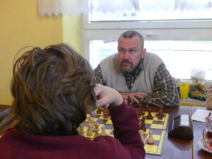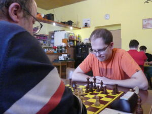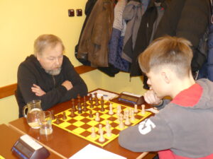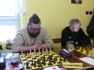 Pro našeho juniora těžká šichta, Pavel má odehrán nespočet partií, hodně i proti silnějším. Náš hráč se ale nelekl, Londýn postavil docela rozumně, chvíli se nám to moc nelíbilo, pak zase (snad) jo. Jenže se stalo něco, nad bílým králem se začalo smrákat… takže akorát čas nabídnout remízu, kterou domácí matador vzal, čímž se nám notně ulevilo.