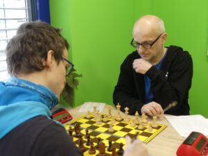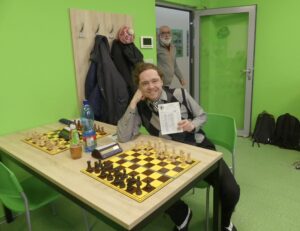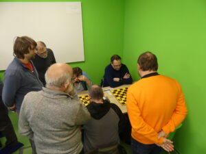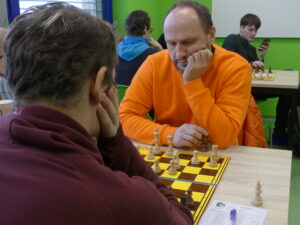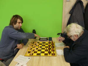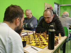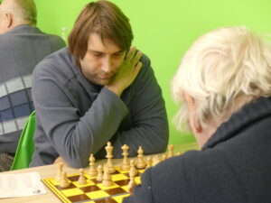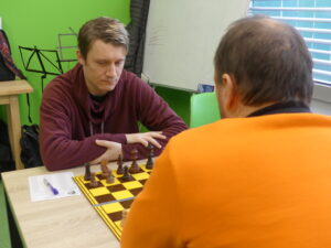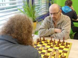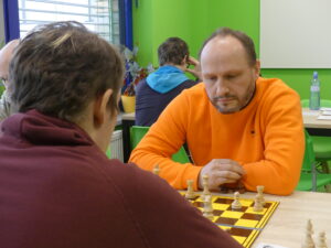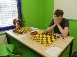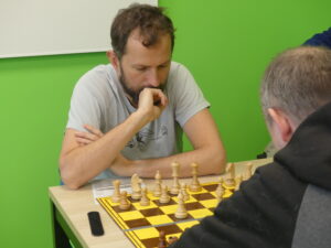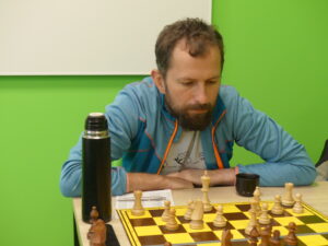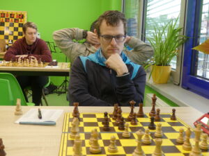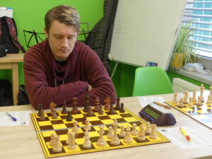 2. Daniel Martin-Kosek Marek 1/2 DG moc neznám, s braním na f6 už vůbec ne. Bílý ale nastoupil zdravě do centra a našemu hostovi se nedařilo rozehrát bělopoláka – v podobných pozicích častý problém. Soupeř po c5 vytvořil předpolí na d6, našeho borce mačkal… a ten to nečekaně vyřešil obětí kvality. To asi sok nečekal a spokojil se s remízou. Pro nás dobrý výsledek.