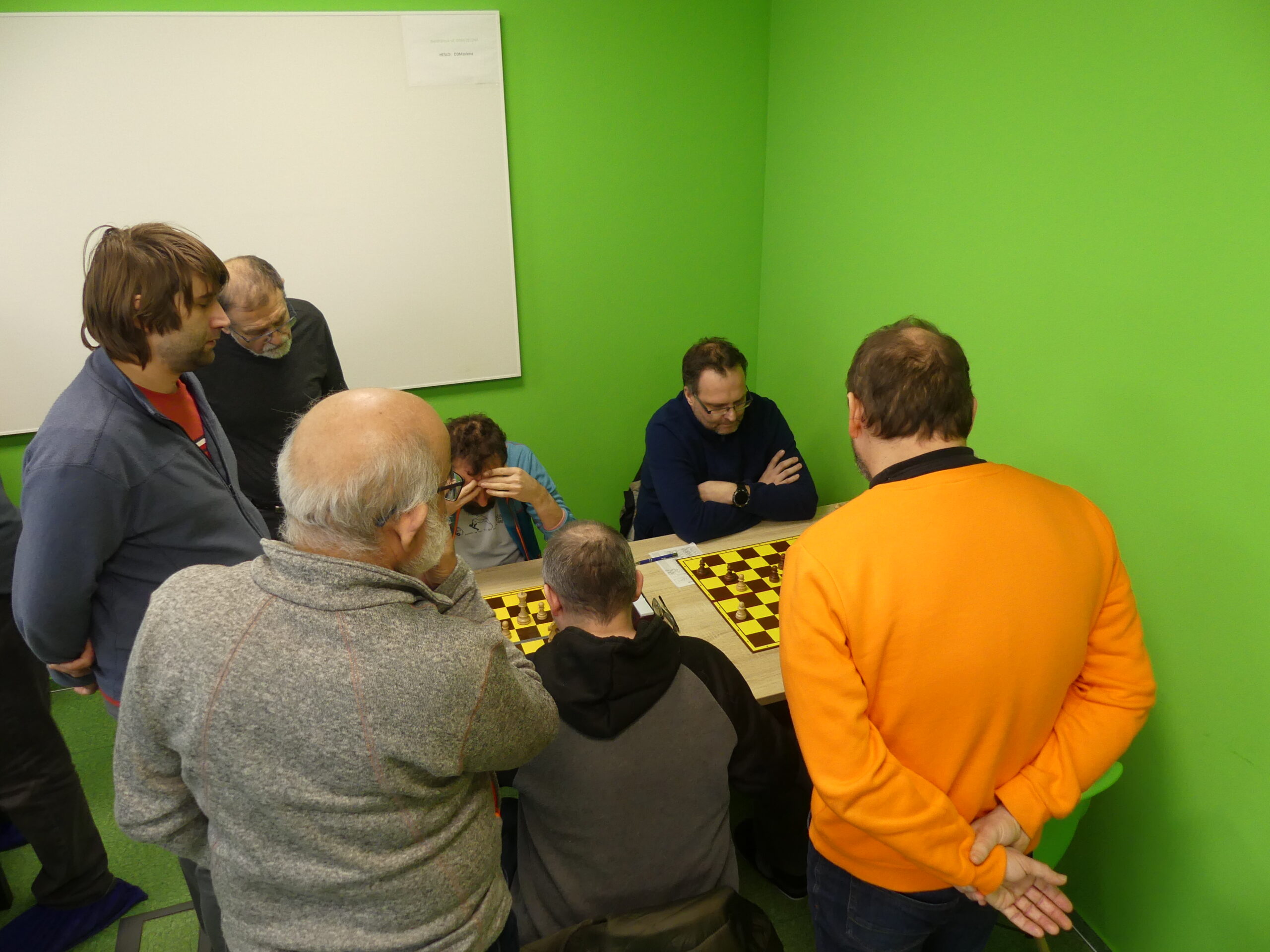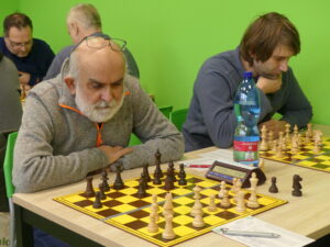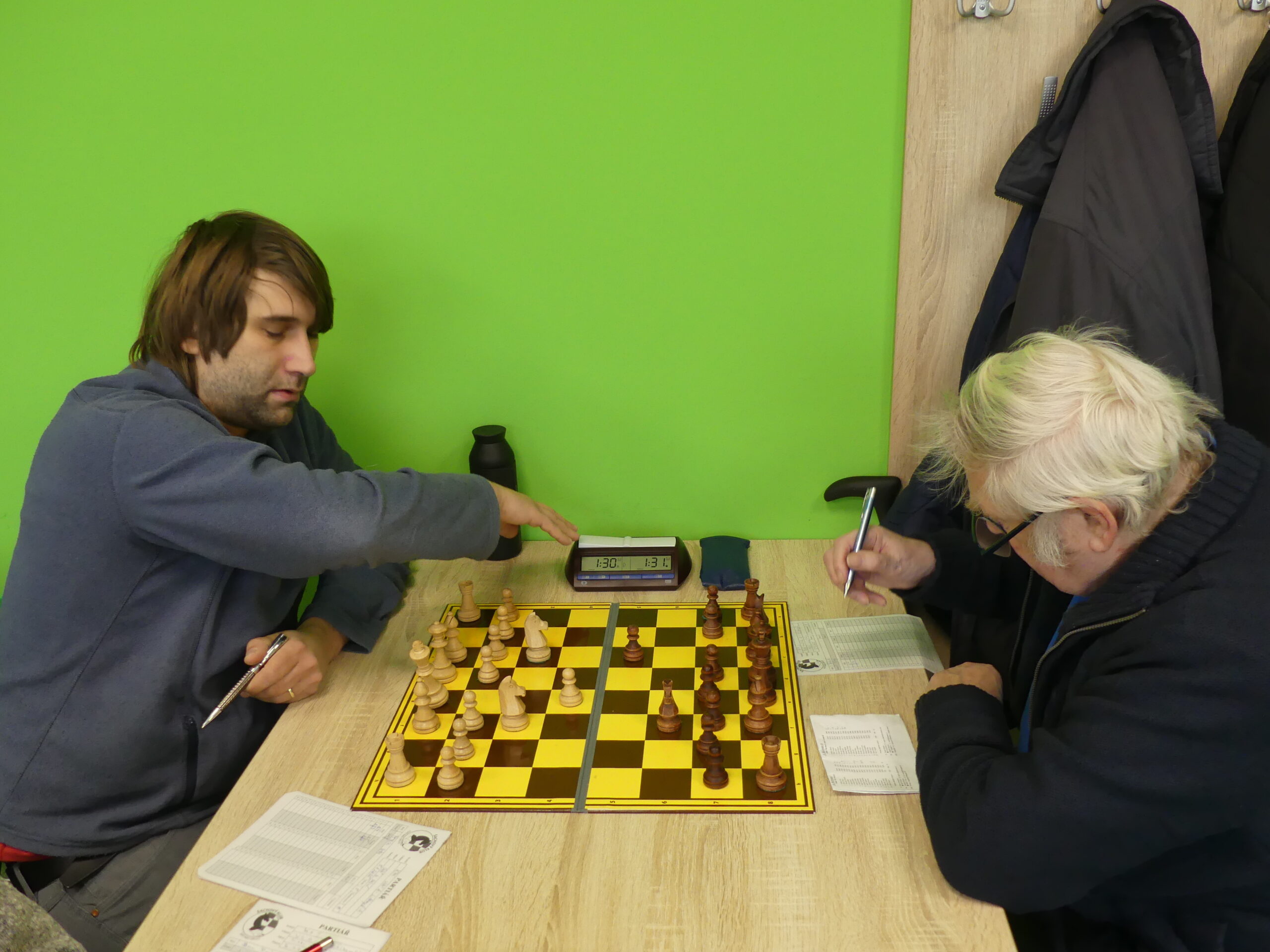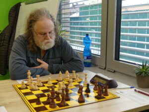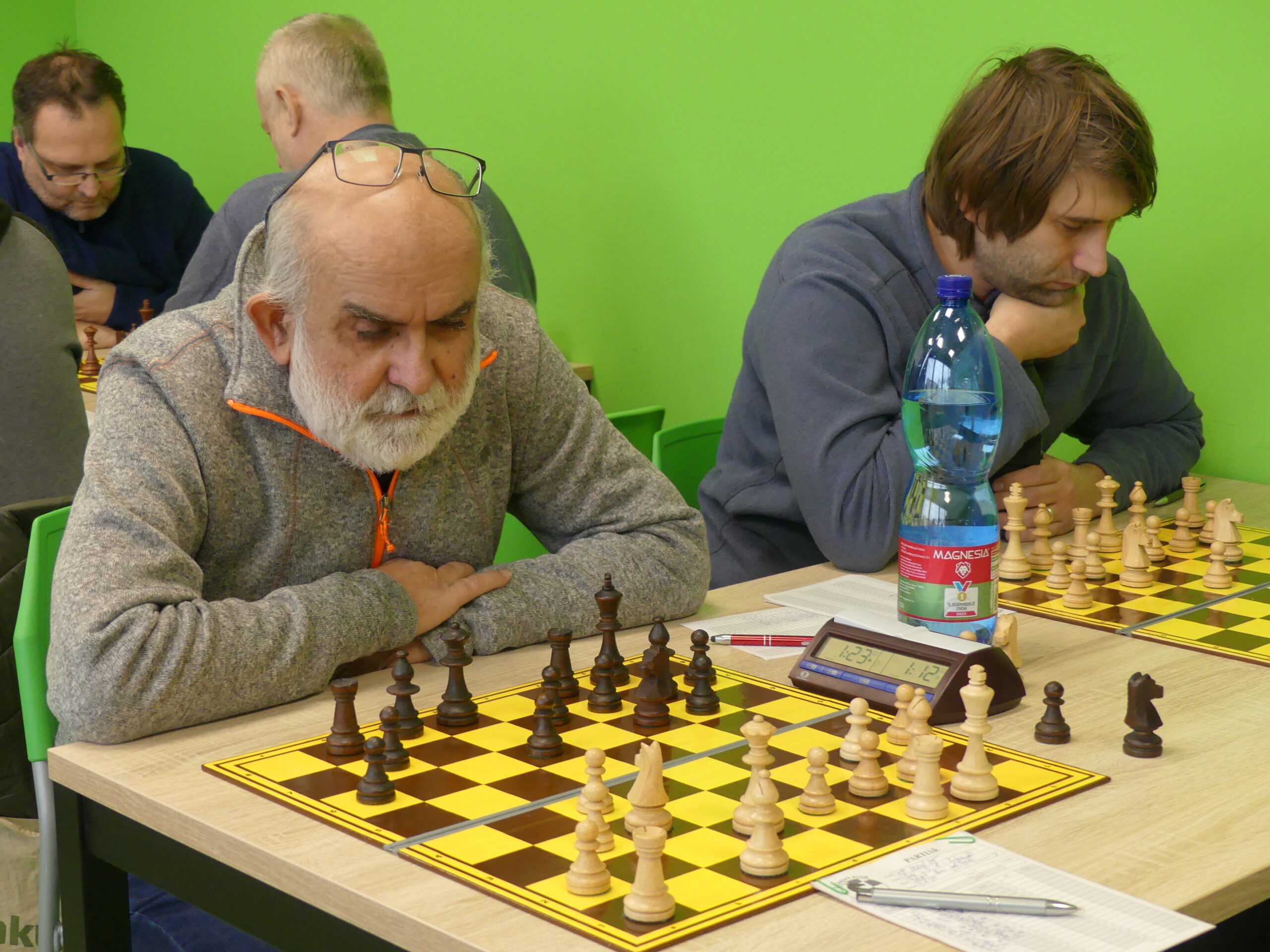 8. Petrík Peter-Volf Jaroslav 1/2 Seděli jsme vedle sebe, ale z partie na osmé jsem moc nepochytil. Oba pánové místo teorie dost vymýšleli, bílý dal/obětoval floka, černý ho nedržel přesně. Redukce materiálu ale našemu matadorovi vyhovovala, věžovku hodnotí ploutev rovně, ale hrát ji s Jardou… po nabídce remízy se Peterovi zjevně ulevilo.