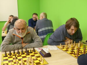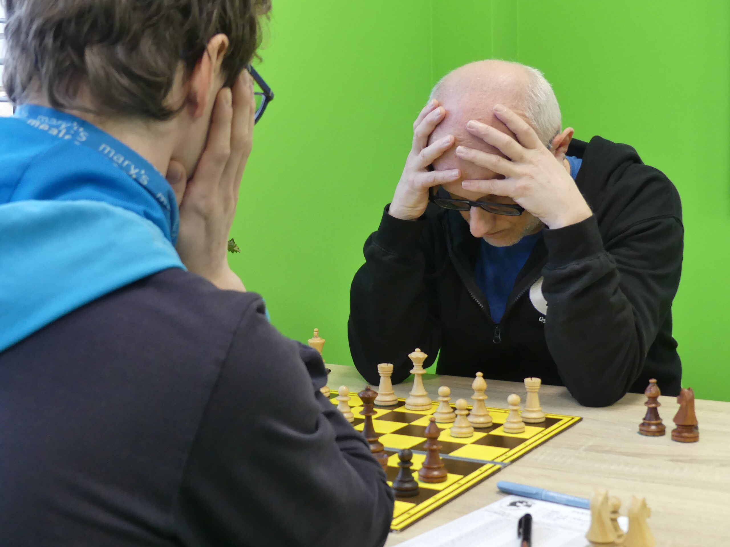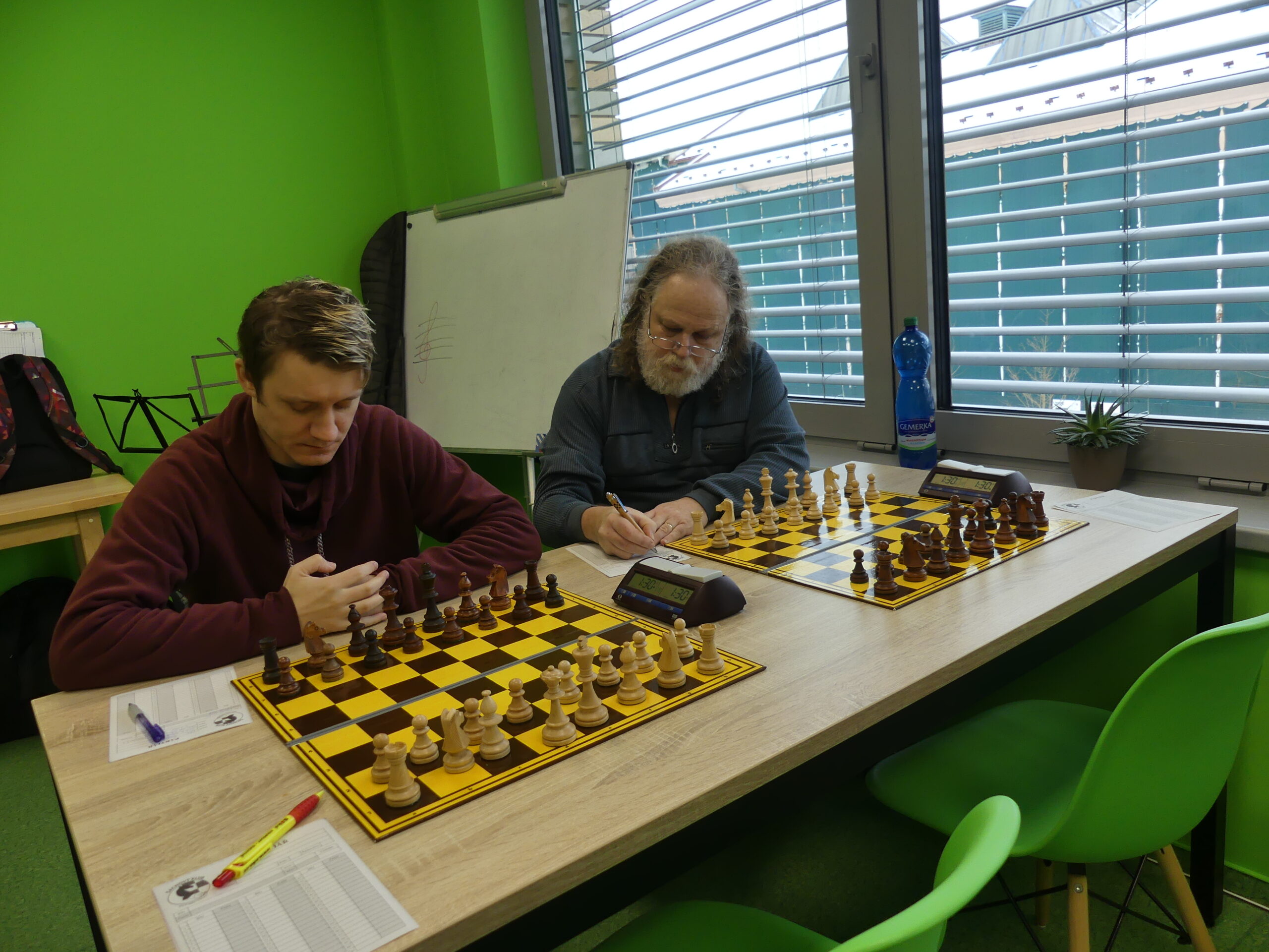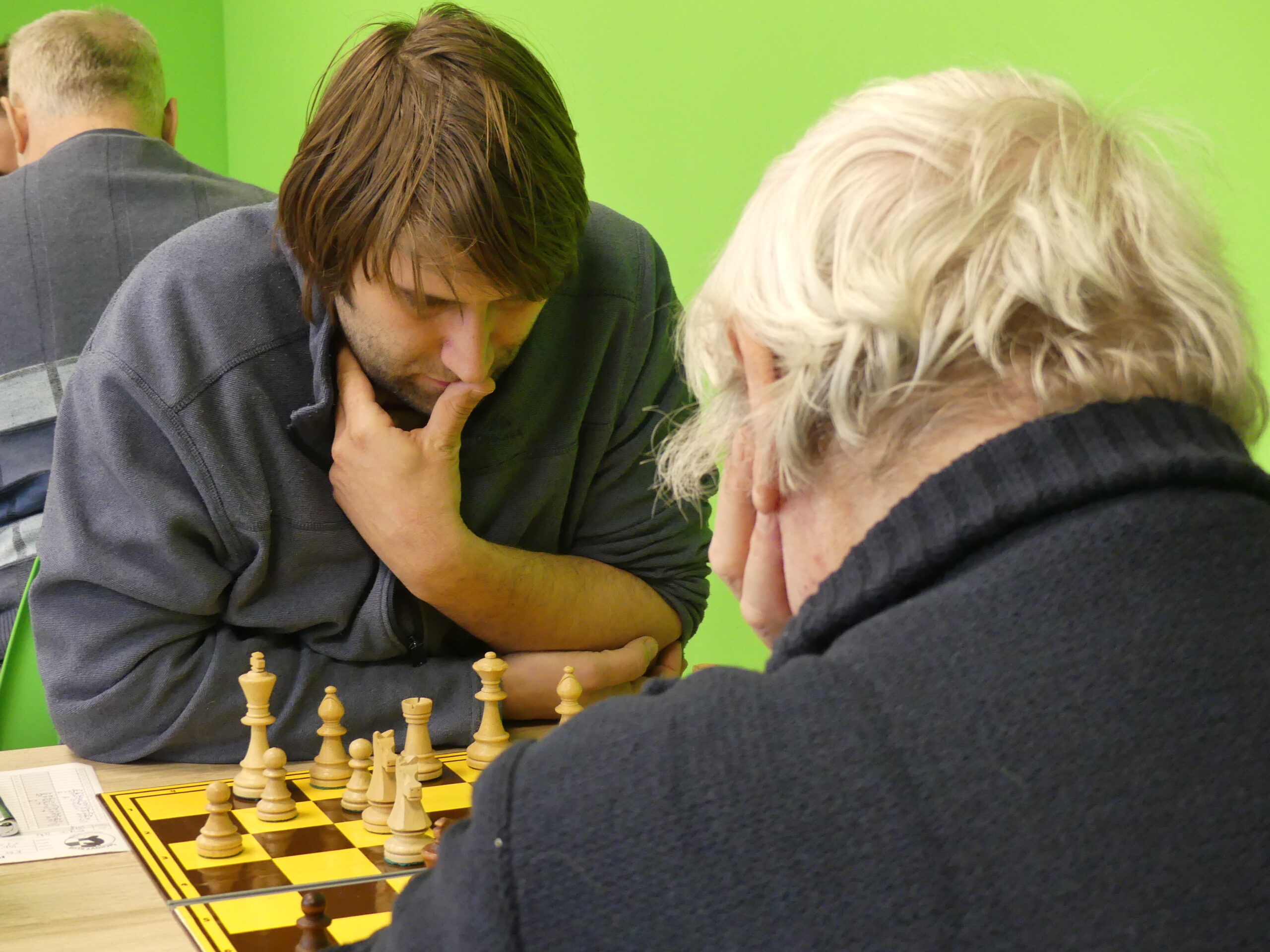 8. Petrík Peter-Volf Jaroslav 1/2 Seděli jsme vedle sebe, ale z partie na osmé jsem moc nepochytil. Oba pánové místo teorie dost vymýšleli, bílý dal/obětoval floka, černý ho nedržel přesně. Redukce materiálu ale našemu matadorovi vyhovovala, věžovku hodnotí ploutev rovně, ale hrát ji s Jardou… po nabídce remízy se Peterovi zjevně ulevilo.
