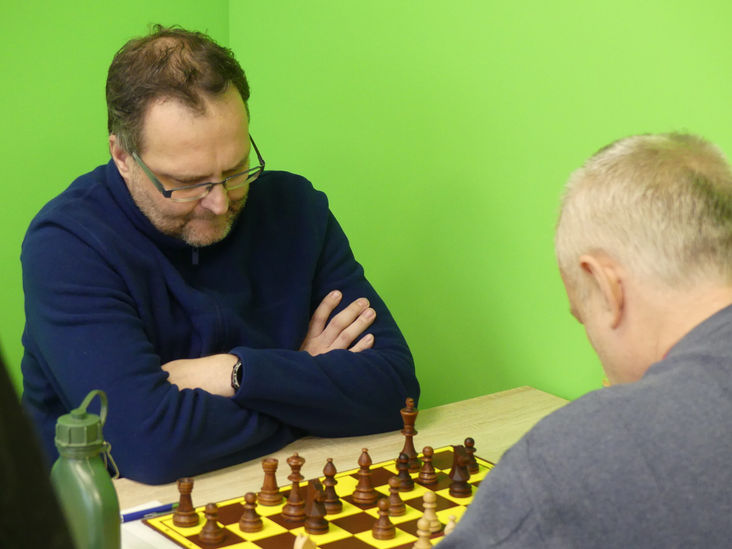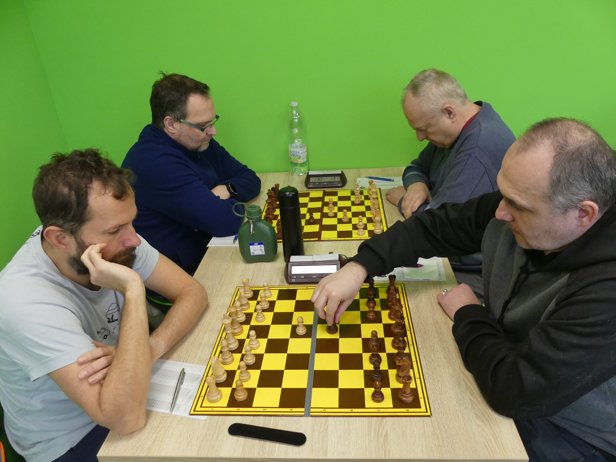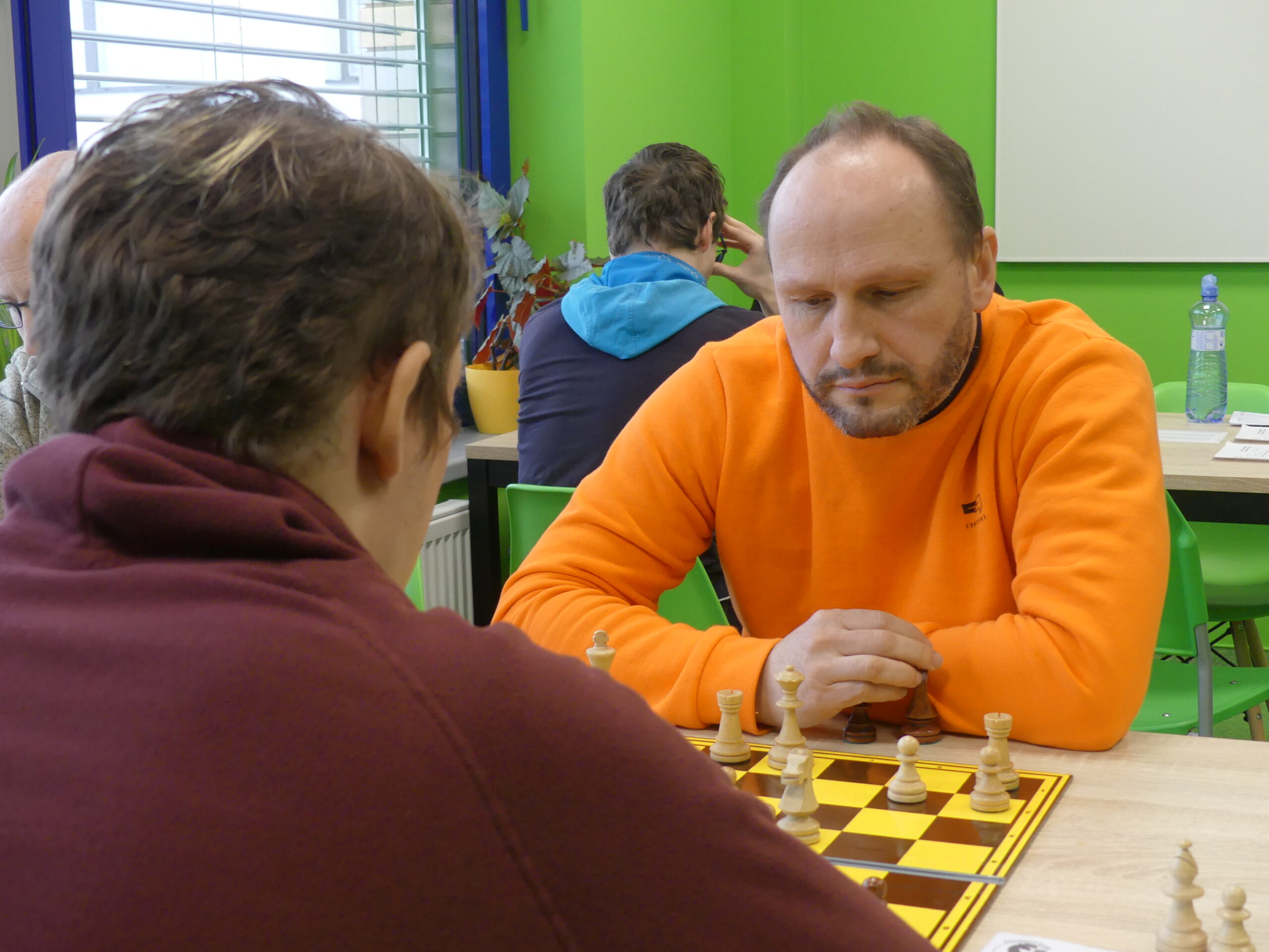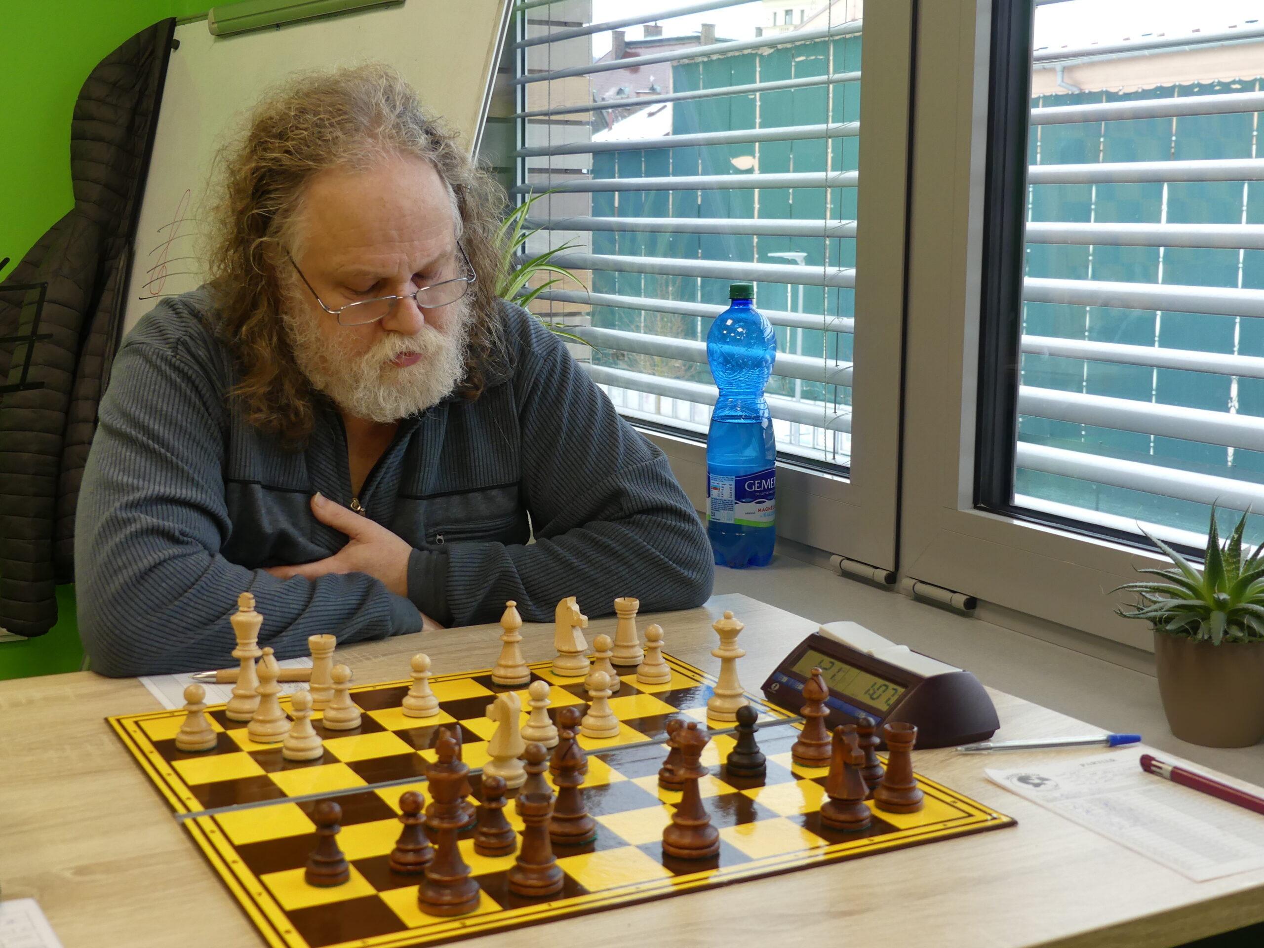 7. Pokorný Jan-Šváb Jiří 1:0 Se sympatickým soupeřem jsme se potkali v posledním roce tuším dvakrát, ale pokaždé v litomyšlské Veselce u žejdlíku a prvotřídní krmě. Za šachovnicí jen jednou a před lety. Zahájení mimo přípravu, jen na ukládání figurek, dlouho rovina. Pak jsem se přeci jen dostal k aktivitě, z horšího času byl najednou lepší, hrozby zleva i zprava, nic příjemného na bránění. Mohl jsem vyhrát dokonce ve dvou místech efektně s obětí obou věží, ale skončilo to prozaickým šachem na osmé řadě po hrubé chybě soupeře. Bral to ale sportovně… tak zase na Veselce 🙂