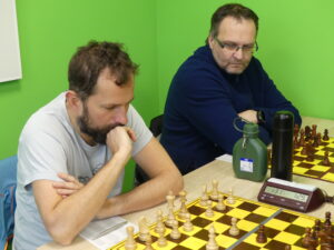 6. Odstrčil Jaromír-Poslušný Martin 1/2 Jelikož hrajeme ve stejném oddílu a chodíme na stejné rodičáky, tak si odpustím kritiku zahájení 🙂 Naopak obdivuji, jak nevábné pozice umí Márty ustát a rozehrát. Tady to z nějakých -2 asi tak po 5. tahu bylo časem -1, pak 0 a nakonec musel dávat pozor spíš hostující hráč. Bojovalo se zodpovědně až do koncovky, takže půlka černými naprosto v pořádku.