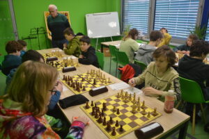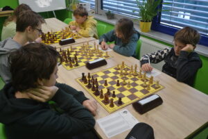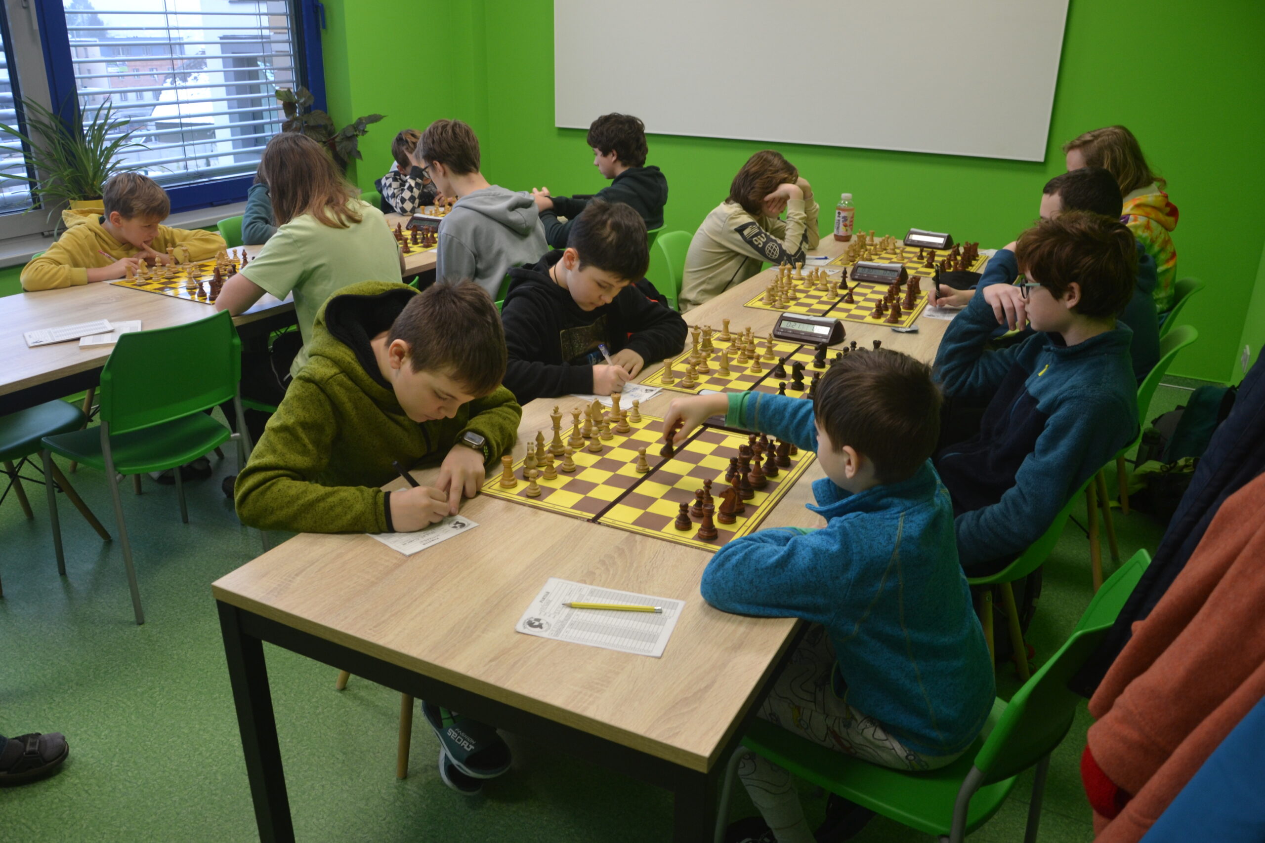 Další trénink věnujeme zase pomalejším partiím se zápisem (většinou tempo 20 min + 30 s/tah). Sešlo se 13 hráčů velmi různé úrovně (včetně dvou tradičních zástupců České Třebové).