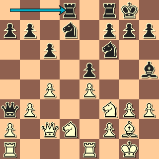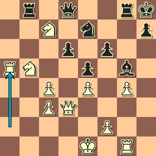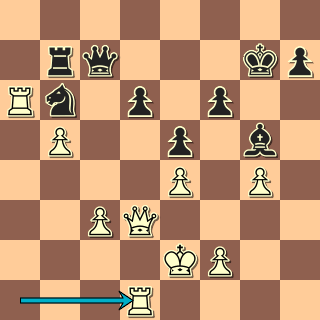 Věž je tabu pro Dg5, střelec je tabu pro Ve3. Jedinou obranou je 20. … Se7! a nyní přijde učebnicová oběť druhého střelce 21. Sxg7!! Kxg7 a vyhrává počítačová varianta 22. Dg4+ Kh6 23. Ve3 Sg5 24. Vh3+ Kg6 25. f4 Dd8 26. fxg5 a zde jak 26. … Dxg5 27. Df3 s dalším Vg3, tak 26. … Kg7 27. De4 Vh8 28. De5+ Kg6 29. Vdd3 vede k výhře bílého.