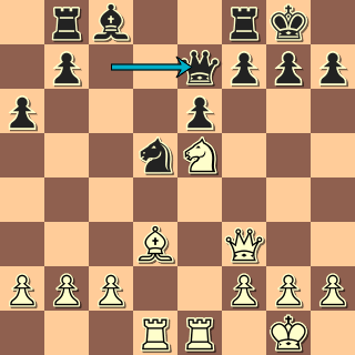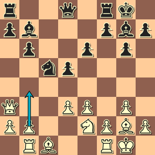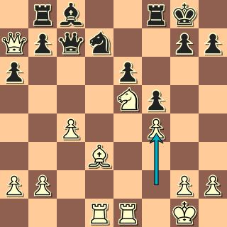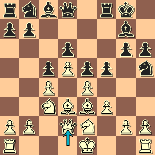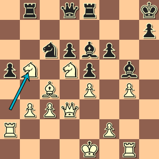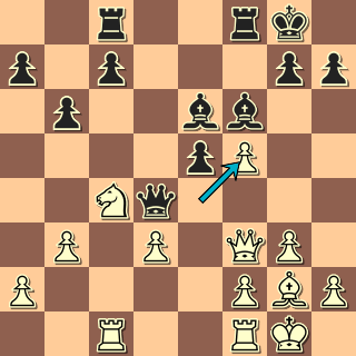 V pozici, která trochu připomíná sicilku s opačnými barvami, vyřešil bílý situaci v centru typickým 18. e4! Po 18. … Se6 pak mohl zahrát 19. exf5 a dokazovat, že pe5 je slabší než pd3. 19. Df3? dalo černému šanci zahrát 19. … f4! a pak obsadit pole d4 právě tak jako se v sicilce obsazuje „díra“ na d5. Okamžité 19. … Jd4? 20. Sxd4 Dxd4? 21. exf5! převážilo šance na stranu bílého.