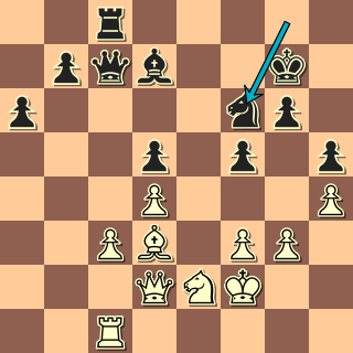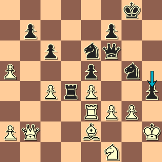 Vidíte pozici po 30. … h4! Jedinou slaboučkou šancí bílého byla blokáda po g4; jak se král odkryje, bude konec hned: 31. Dc1? hxg3+ 32. Jxg3 Dh6+ 33. Kg1 Jh3+ 34. Kf1 Jhf4 Proti průniku dámy není obrany. 0:1